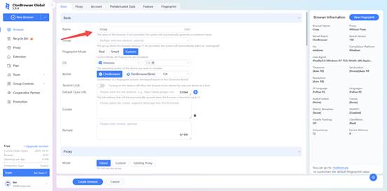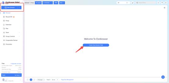 1. Visit the Clonbrowser official website https://www.clonbrowser.com/, download and install the browser, then register an account and log in. Click “New Browser” in the left-hand menu.