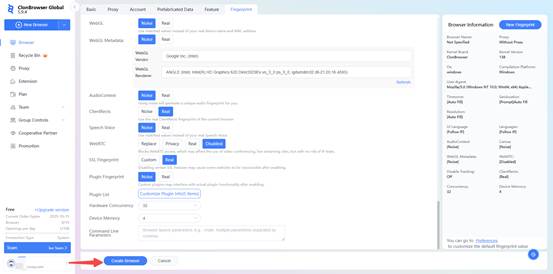8. Click “Create Browser” to save this browser. Then, click "Launch" to start using the configured browser.